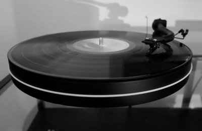 For those unfamiliar with recorded music's golden age of vinyl, what you're looking at is a very sensitive piece of equipment called a turntable. The record sits on the plate, and the tonearm holds the needle as it moves across the record, capturing the musical notes reproduced in its groves. Both have been calibrated to absorb shock and create balance, a balance that keeps the needle from jumping out of the grooves scratching the record. Once that happens, the record is beyond repair as the scratch will be heard every time the record is played.